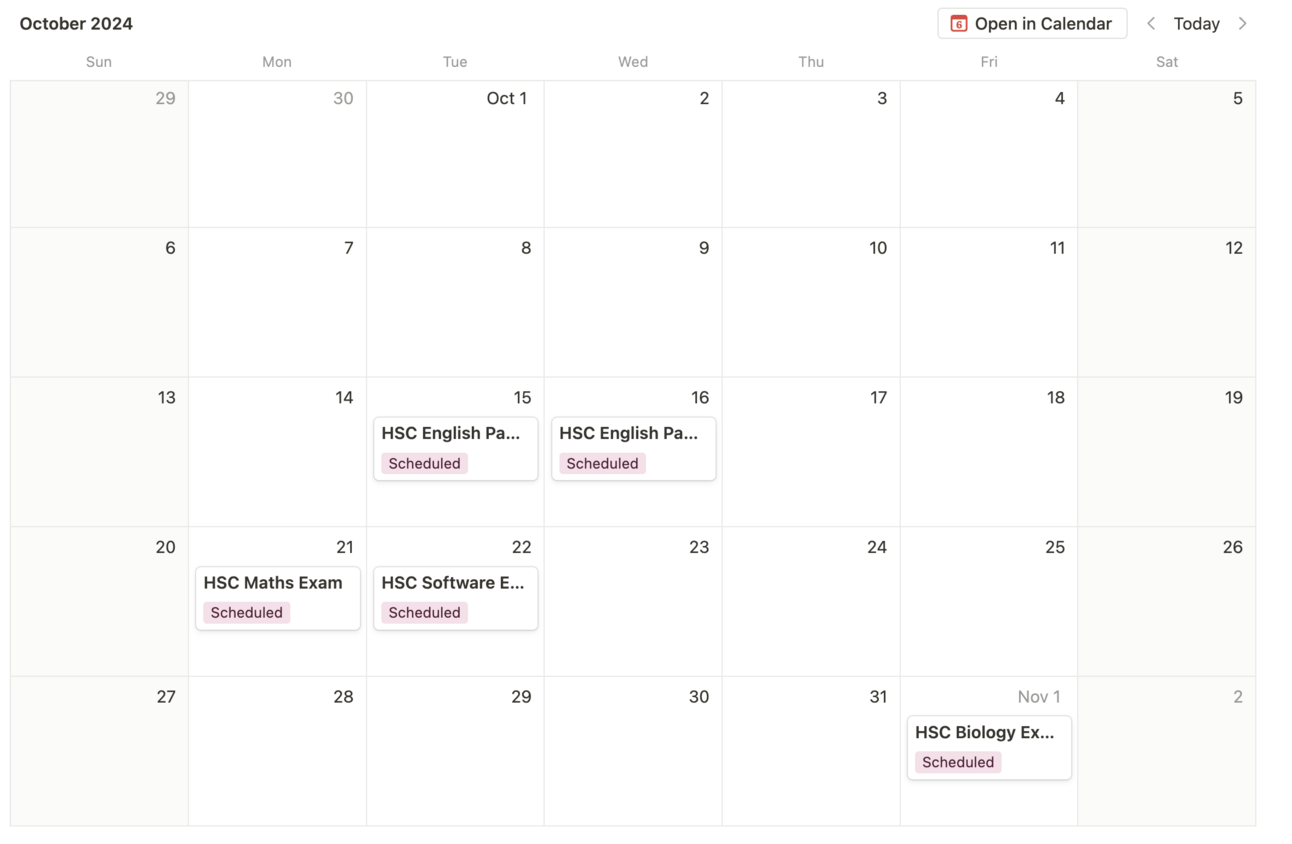 By scheduling in your exam dates, you’re becoming self-aware of when you need to start preparing and how long left till your HSC exams — this will also boost motivation!